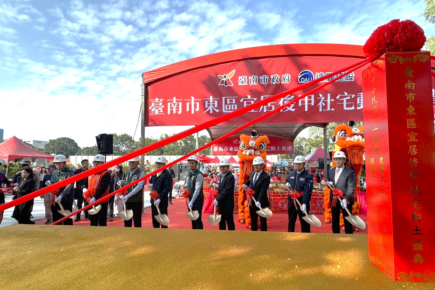 內政部國土管理署長吳欣修今(22)日出席「臺南市東區宜居後甲社會住宅」開工動土典禮。吳欣修表示,平實營區原為軍方營區與老舊眷村用地,由內政部全額補助臺南市政府辦理先期規劃及招商作業,採公辦都更方式分期開發,是臺南首例營改土地更新案。今日二期工程預計於118年完工,可無償分回175戶,加上今年6月已開工的一期工程「臺南市東區宜居平實社會住宅」預計分回238戶,市府將可無償分回共413戶。 吳署長指出,此次「臺南市東區宜居後甲社會住宅」工程,基地面積約930.83坪,位於東區與永康區交界,鄰近平實公園、南紡夢時代商圈、成功大學、榮總醫院與大灣交流道,生活機能完善、交通便捷,全棟將採通用設計並強化區內無障礙規劃,同時配置公共托育中心、勞工服務據點及店鋪等設施。 吳署長表示,近年臺南市政府積極推動公辦都市更新,透過都更與容積獎勵措施,已無償取得1,281戶社會住宅,展現中央與地方協力的成果。公辦都更除了改善老舊環境,更能引入多元公共服務,融合住宅、商業與綠地等複合功能,持續帶動東臺南副都心發展,打造安全、舒適且具多元機能的城市生活環境。 今日出席貴賓,包括內政部國土管理署長吳欣修、臺南市長黃偉哲、臺南市政府都市發展局長林榮川及地方民意代表等,共同見證平實營區邁入嶄新階段的重要時刻。