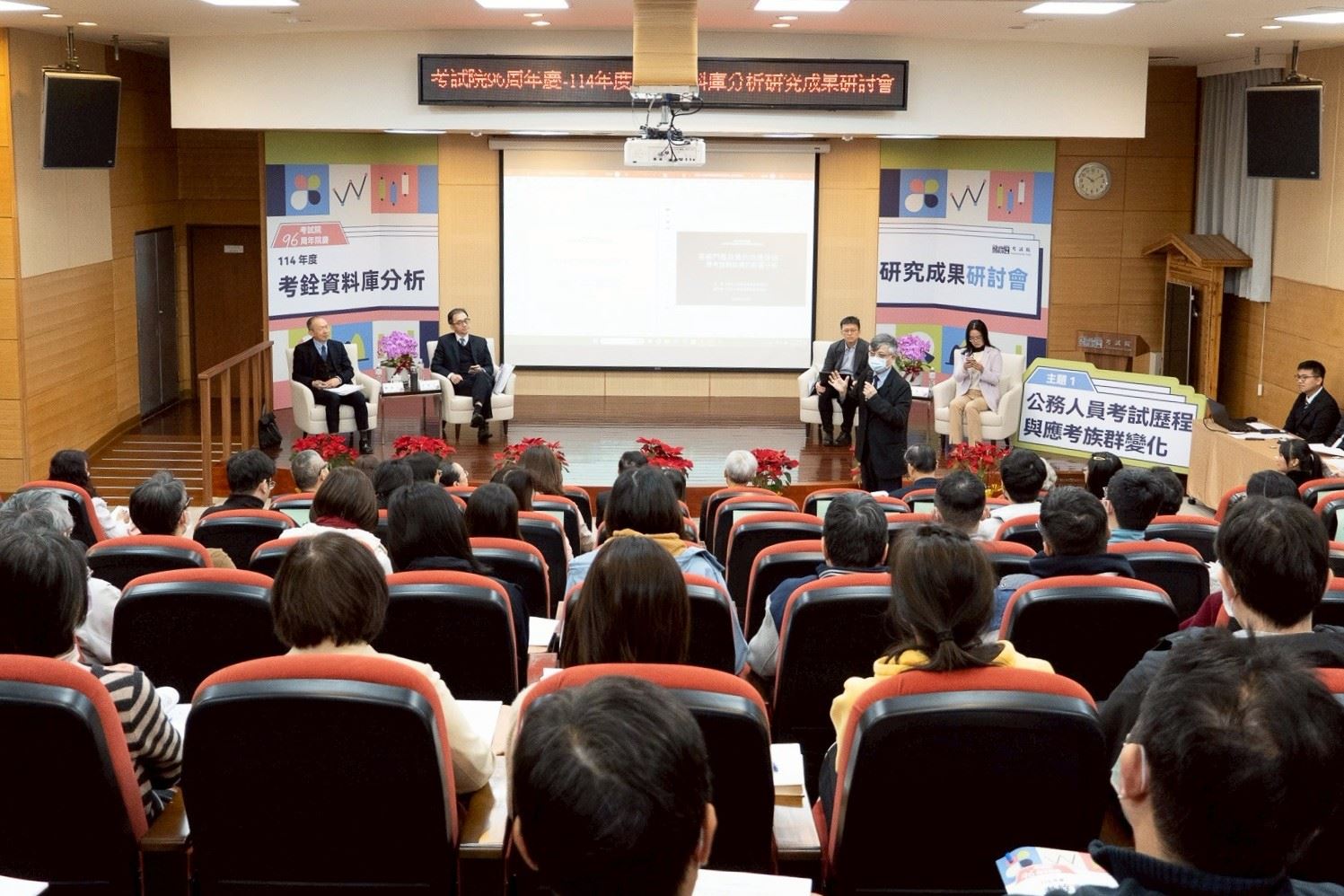 考試院於今(9)日上午9時舉辦96周年院慶活動「114年度考銓資料庫分析研究成果研討會」,邀請考試院暨所屬機關、行政院人事行政總處,就考銓資料庫分析研究成果進行交流,促進研究成果加值運用,提供多元的思維與方向,共同精進未來業務之發展。 周弘憲院長致詞時表示,考試院自111年底成立「考銓資料研究中心」以來,持續推動循證式(evidence-based)決策理念,透過整合各部會的資料資源,結合學界的分析專業,建立「學者分析、機關解讀」的協力運作模式,歷年成果均舉辦研討會分享,擴大研究成果的應用價值與擴散效益;對此要感謝考試院的前輩,為我們國家考試及文官體制,建立良好的基礎,期勉考試院團隊要忠實、公正地執行憲法賦予我們的職權,並持續增進研究分析的能力,讓數據為我們的政策說話。 考試院進一步說明,本次研討會共有兩個主題,主題一為「公務人員考試歷程與應考族群變化」,探討「未滿30歲青年報考國家考試之歷程分析」、「英檢門檻政策的效應評估:應考族群結構的影響分析」二個議題,分別由臺北大學公共行政暨政策學系林俞君助理教授、臺北市立大學社會暨公共事務學系李俊達教授、東吳大學政治學系王貿助理教授及賴怡樺助理教授進行發表,並由考選部綜合規劃司方秀雀司長、內政部移民署謝文忠副署長擔任與談人。 主題二為「公務人員權益保障與職務列等」,探討「公務人員保障事件主要類型與相關因素之分析」、「公務人員職務列等與現職人員銓敘審定職等之落差分析」二個議題,分別由臺北市立大學社會暨公共事務學系黃煥榮副教授、東海大學行政管理暨政策學系張鐙文助理教授、臺灣師範大學公民教育與活動領導學系曾冠球教授,以及政治大學公共行政學系董祥開副教授進行發表,並由公務人員保障暨培訓委員會保障法制處宋孟芬處長、銓敘部法規司王永大司長擔任與談人。 考試院秘書長劉建忻表示,考試院針對重要文官制度相關議題,除了借重學界量化研究的能力進行數據分析外,近年也積極提升機關同仁資料分析能力。他強調,「考銓資料研究中心」未來除持續深化與學者專家及政府機關的合作,也將逐步培育同仁循證式決策的思維與資料分析能力,深化資料治理意識,作為精進公務人力資源政策專業性與精準度的重要基礎。 在意見交流過程中,與會人員針對公務人員考試歷程與應考族群變化、權益保障與職務列等議題,踴躍提問、互動熱烈,活動歷時3個小時圓滿結束。
