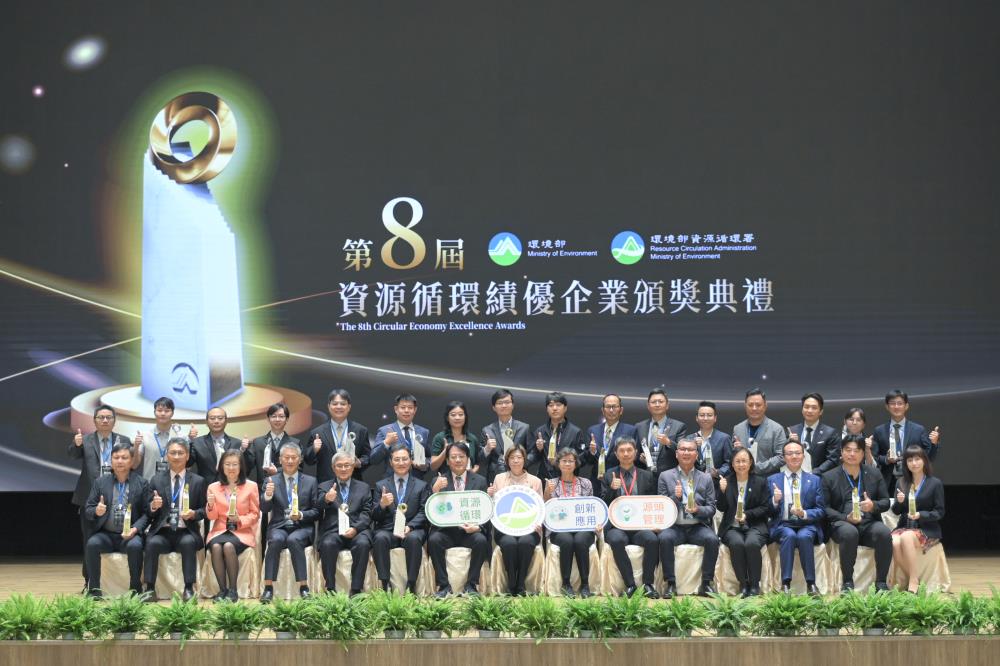 面對全球淨零轉型與循環經濟浪潮,臺灣企業正以積極行動展現永續決心。環境部資源循環署今(31)日舉辦「第八屆資源循環績優企業遴選頒獎典禮」,由賴瑩瑩署長頒獎,表揚28家在資源循環表現卓越的企業。這些企業以實際行動落實「資源循環零廢棄」,展現臺灣產業在永續道路上的堅定步伐與創新能量。 循環署說明「資源循環績優企業遴選」已邁入第八屆,累計超過百家企業參與,成功樹立多項循環經濟典範。歷屆得獎企業從再生建材、循環包裝到廢棄物再利用技術,皆展現了臺灣產業鏈的創新潛力與綠色競爭力。 本屆遴選活動共分為三大組別,包括從源頭減廢與綠色設計出發的「源頭管理組」、以創新技術及商業模式開創循環新價值的「創新應用組」,以及推動再生料利用與廢棄物資源化的「資源循環組」。經過嚴謹評選,共有28家企業獲獎,其中15家獲金質獎、13家獲銀質獎。這些企業以創新研發、循環製程及跨域合作實現永續成果,為產業注入循環經濟新動能。 循環署說明,未來將持續透過政策引導與產官學合作,促進技術交流與制度創新,並推動「資源循環推動法」修法,以建構建構在地循環體系,打造綠色台灣品牌,整合關鍵及戰略資源國家隊,帶動產業創新與永續共榮,期望各界共同支持資源循環推動法修正。